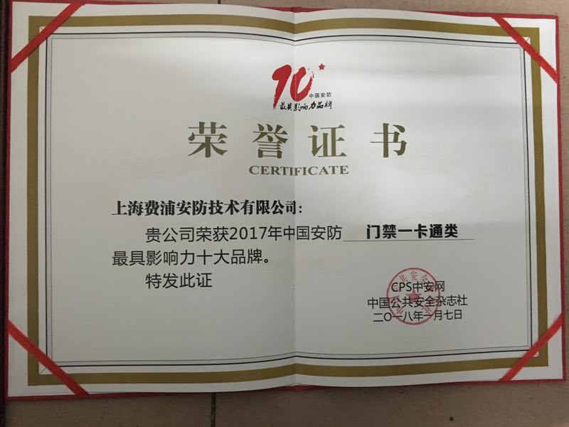 年底是收獲的季節(jié),費浦安防喜訊不斷。2018年1月7日,一年一度的全國安防界迎春團拜會在深圳世界之窗凱撒宮隆重舉行,上海費浦安防技術有限公司再獲殊榮,獲得"2017年中國安防門禁一卡通類最具影響力十大品牌"的榮譽。